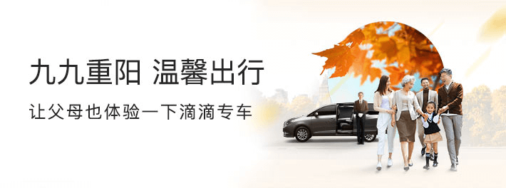 重阳出游,帮父母叫个滴滴专车,让他们在舒适,专业,体面,安全的出行环境中度过重阳节。